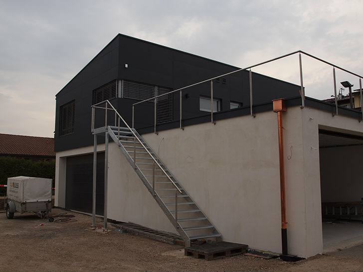 Neubau einer Garage mit Lager und eines Wohnhauses in Holzständerbauweise in Maulburg Baujahr 2014